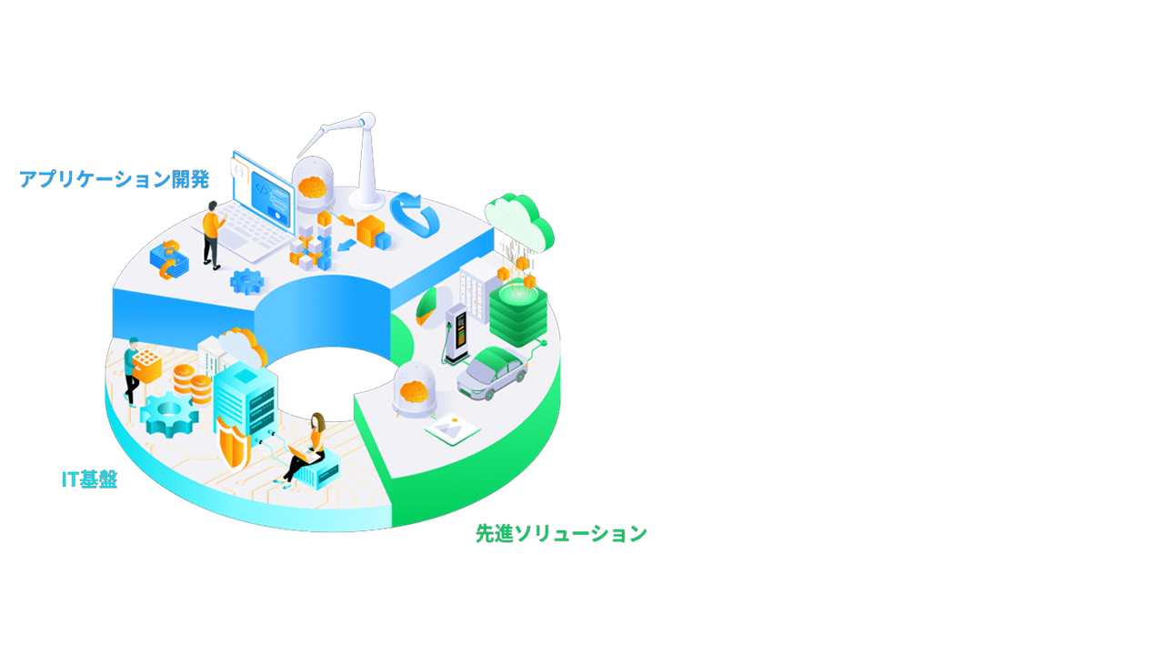 アプリケーション開発、IT基盤、先進ソリューション。