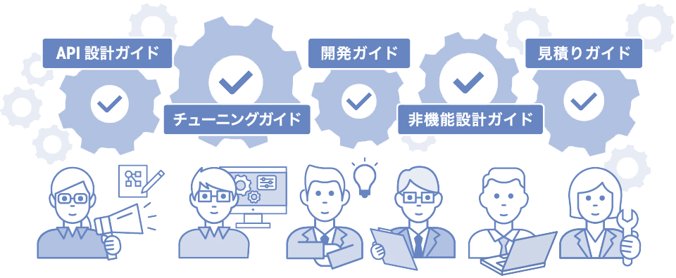 当社は長年自社に蓄積したTableauに関するノウハウを、「API設計ガイド」「チューニングガイド」「開発ガイド」「非機能設計ガイド」「見積りガイド」に体系的に整理・維持・改良しています。これにより社内の技術レベルを一定に保つとともに、お客様へ安定したサービスを提供することが可能です。
