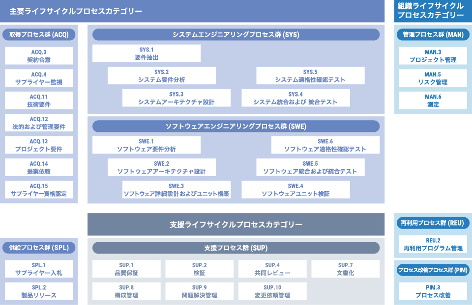 A-SPICE(Software Process Improvement and Capability dEtermination)は、自動車向けのシステム・ソフトウェア・ハードウェア開発プロセスの評価と改善のための国際的なモデルです。